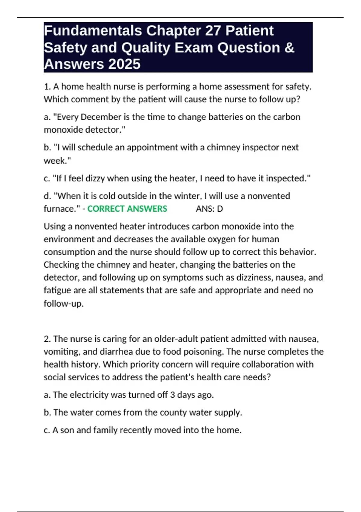 Safety and Quality Exam Question &
