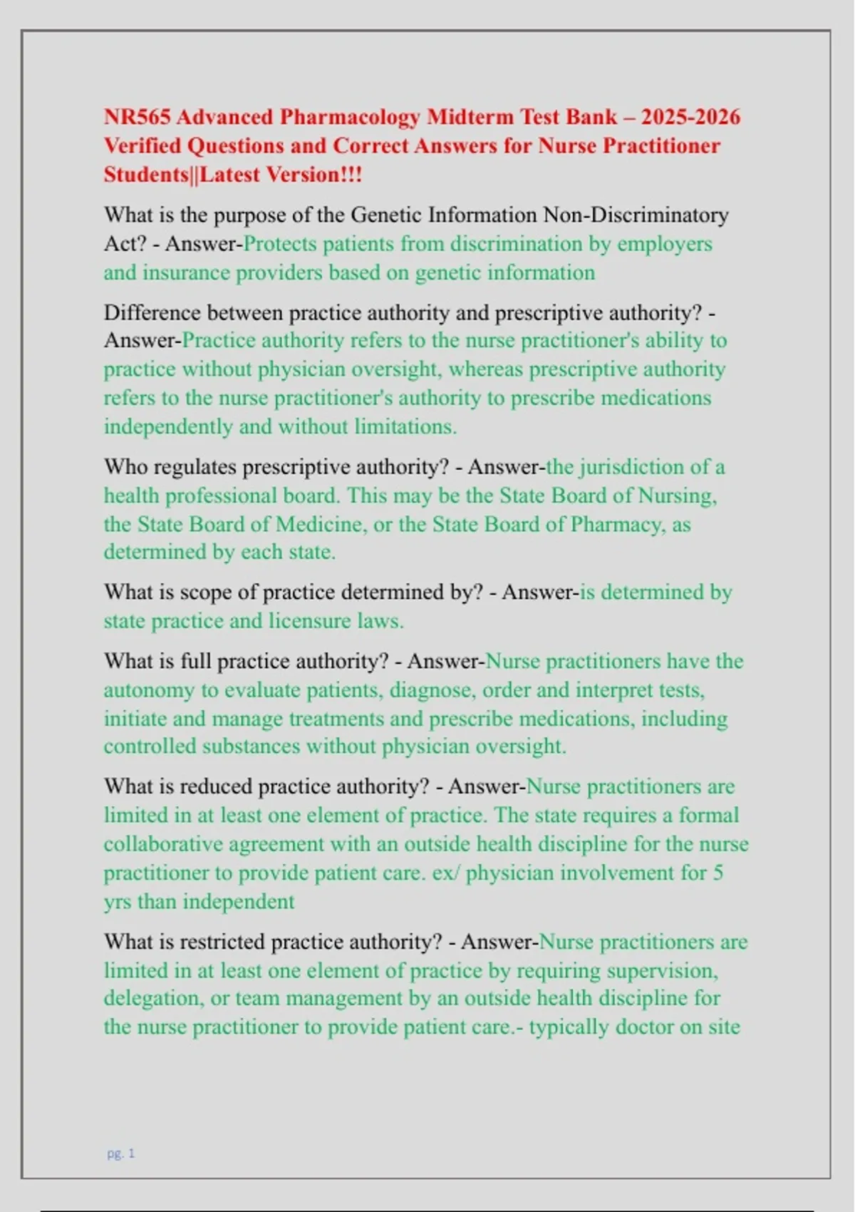 Verified Questions and Correct Answers for Nurse Practitioner