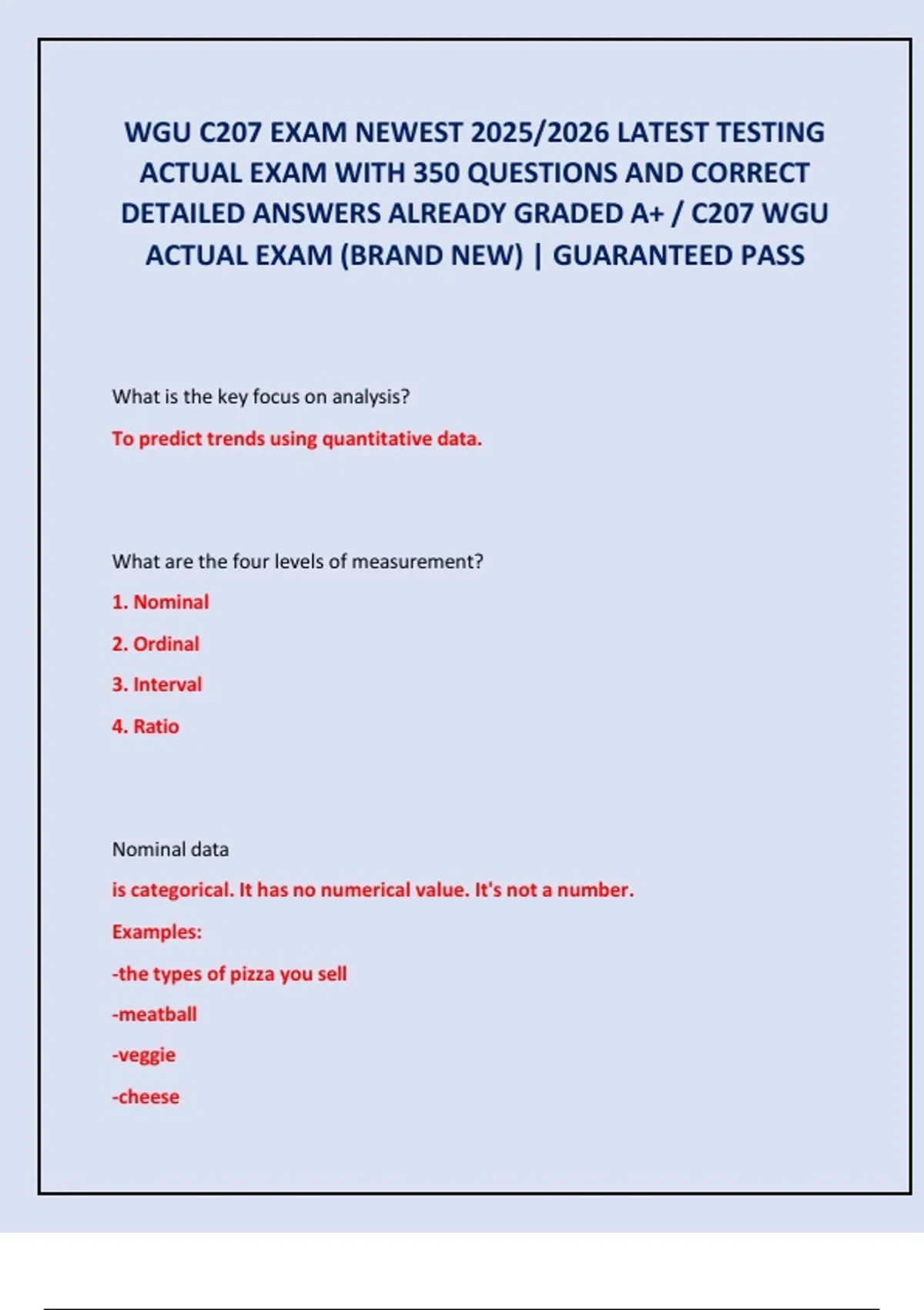 DETAILED ANSWERS ALREADY GRADED A+ / C207 WGU