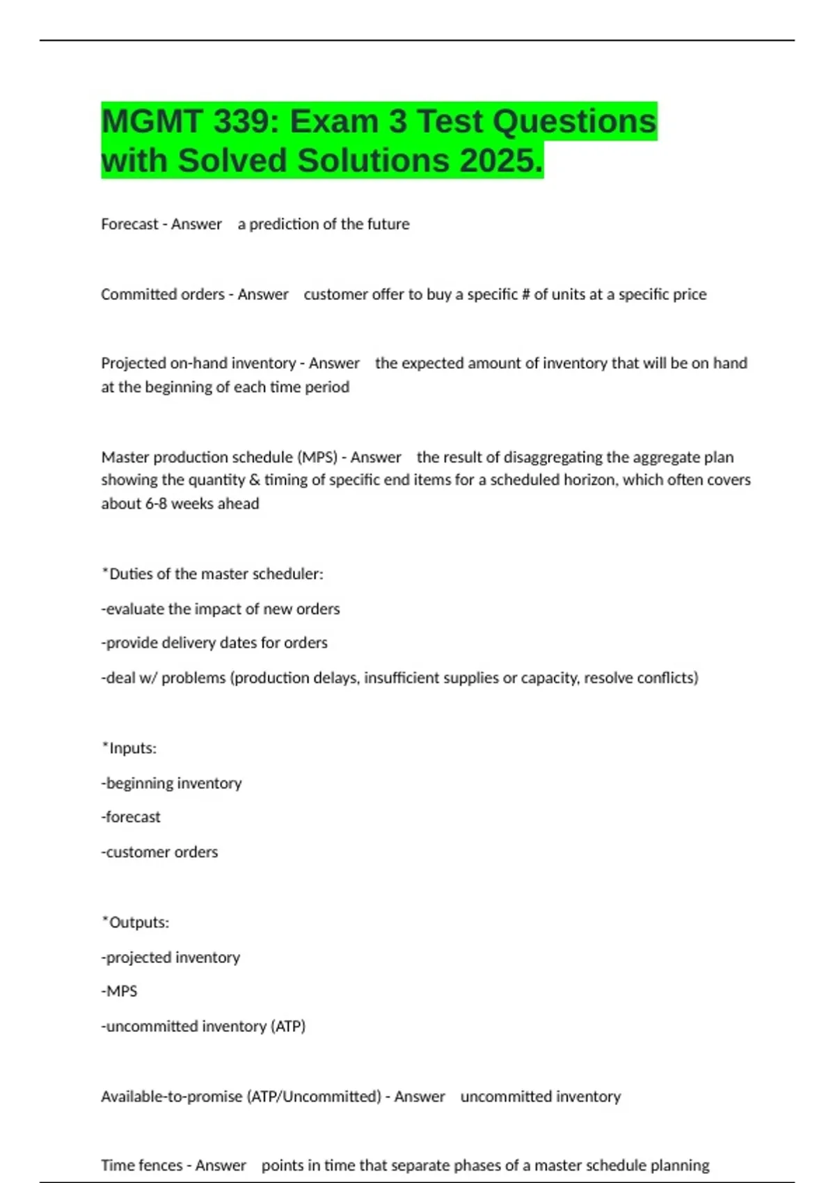 *Duties of the master scheduler: