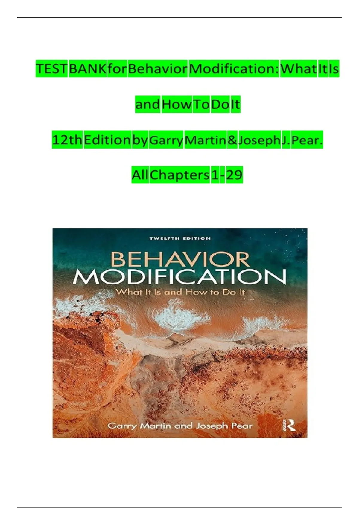 Test Bank for Behavior Modification: What It Is and How To Do It 11th Edition by Garry Martin (Author), Joseph J. Pear (Author) (All Chapters Covered) (Multiple choice Questions and Verified Answers) (Graded A+) Test Bank for Behavior Modification: What It Is and How To Do It 11th Edition by Garry Martin (Author), Joseph J. Pear (Author) (All Chapters Covered) (Multiple choice Questions and Verified Answers) (Graded A+)