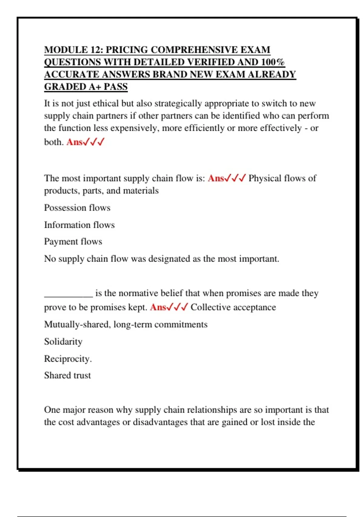 MODULE 12: PRICING COMPREHENSIVE EXAM QUESTIONS WITH DETAILED VERIFIED AND 100% ACCURATE ANSWERS BRAND NEW EXAM ALREADY GRADED A+ PASS