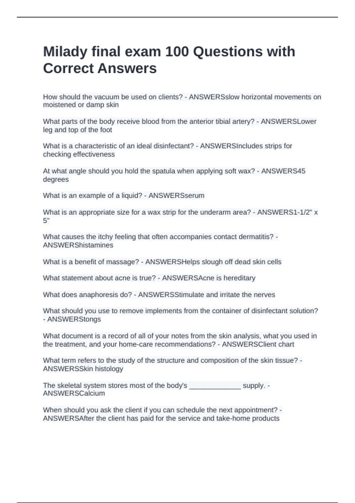 ANSWERSSkin histology