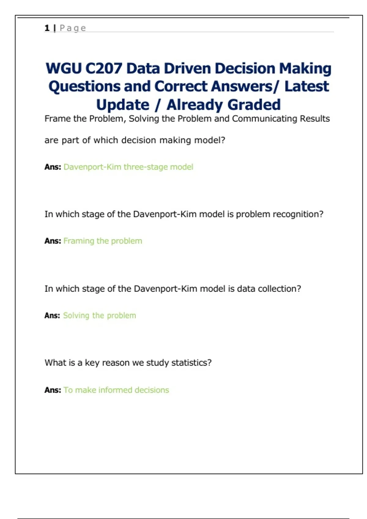 WGU C207 Data Driven Decision Making