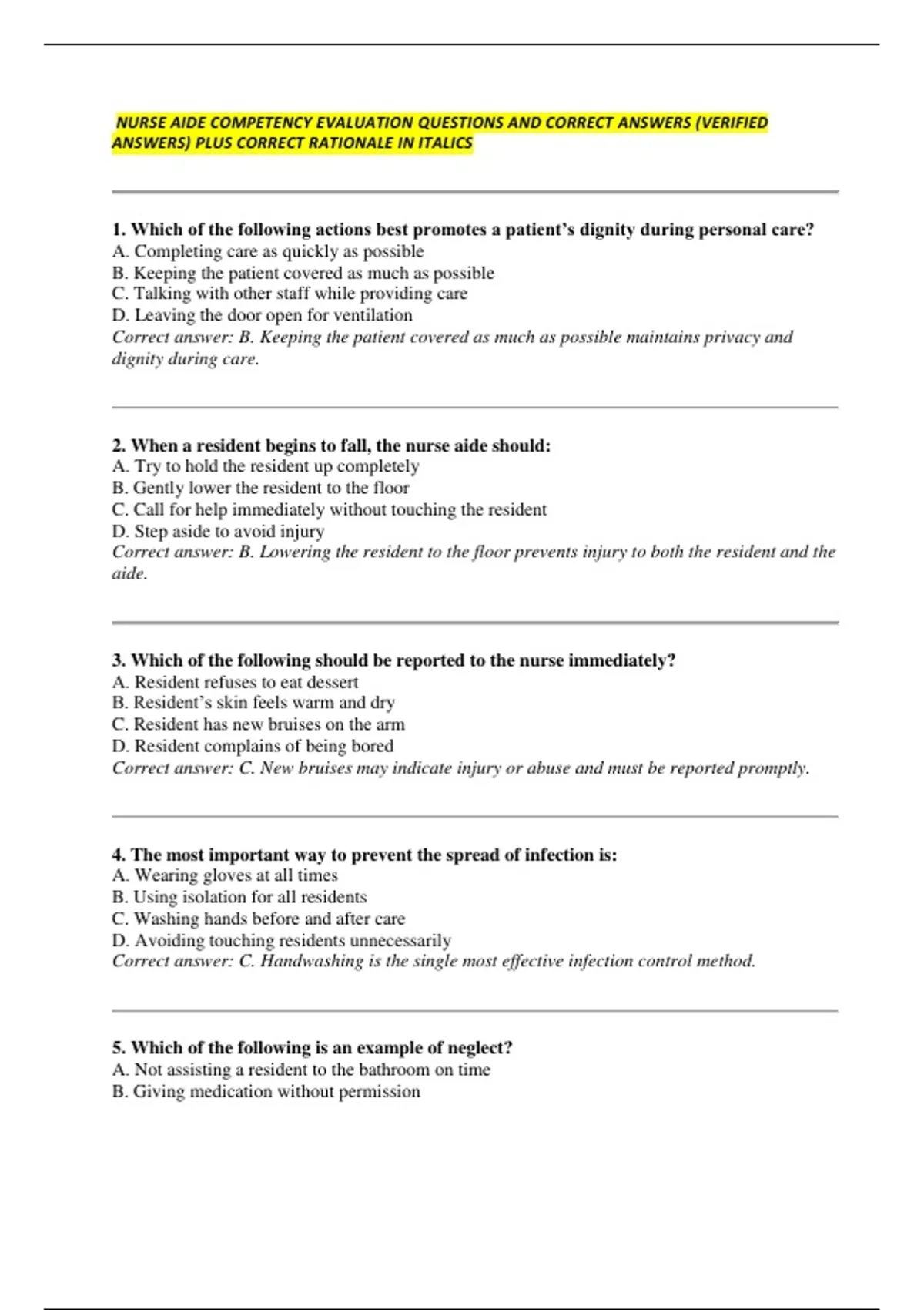 ANSWERS) PLUS CORRECT RATIONALE IN ITALICS