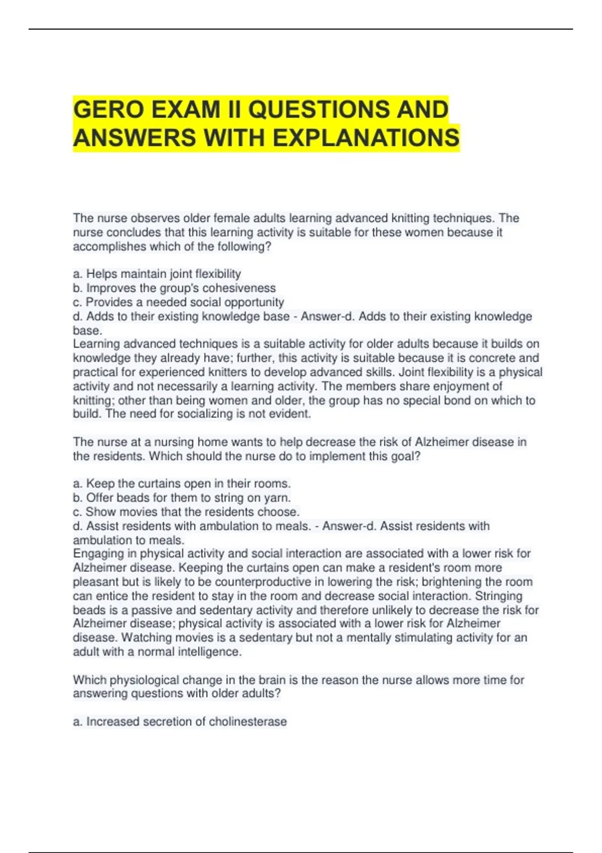 GERO EXAM II QUESTIONS AND ANSWERS WITH EXPLANATIONS