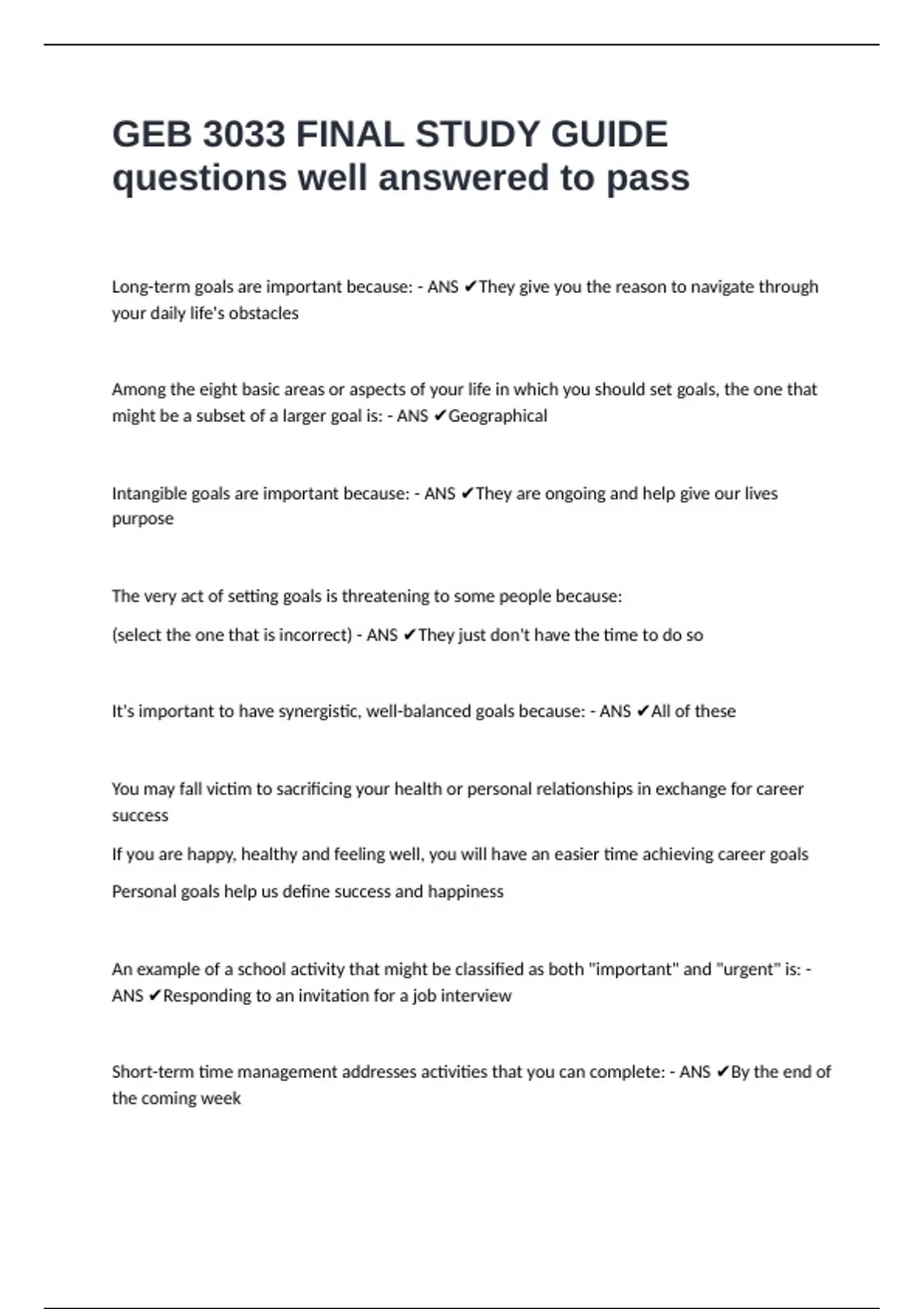 Short-term time management addresses activities that you can complete: - ANS ✔By the end of