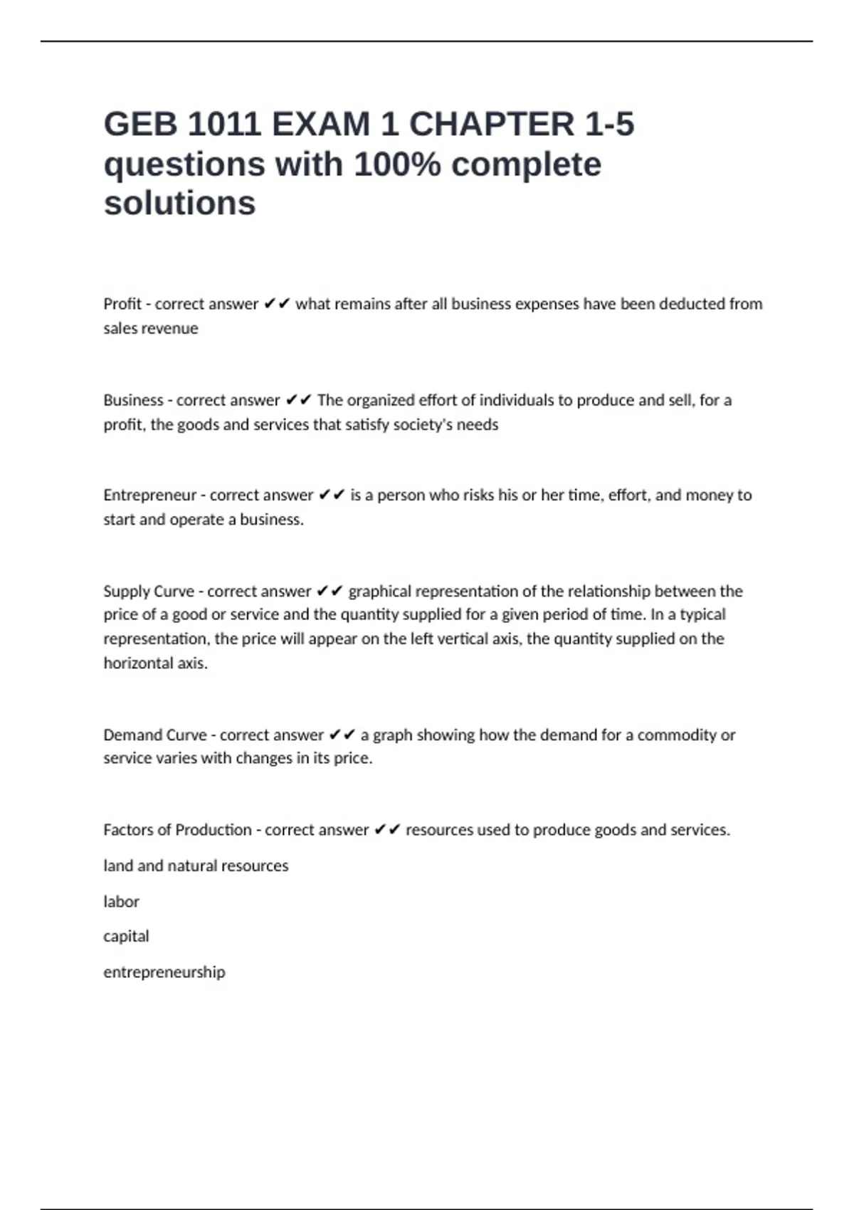 GEB 1011 EXAM 1 CHAPTER 1-5 questions with 100% complete solutions
