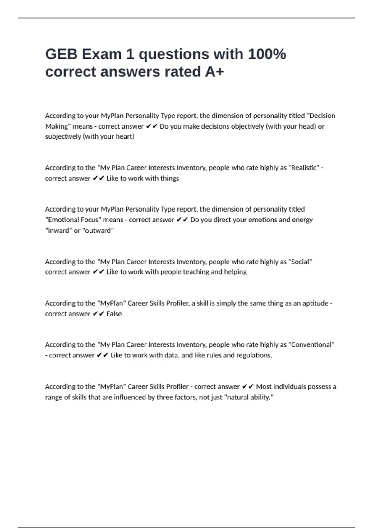 According to the "MyPlan" Career Skills Profiler - correct answer ✔✔ Most individuals possess a