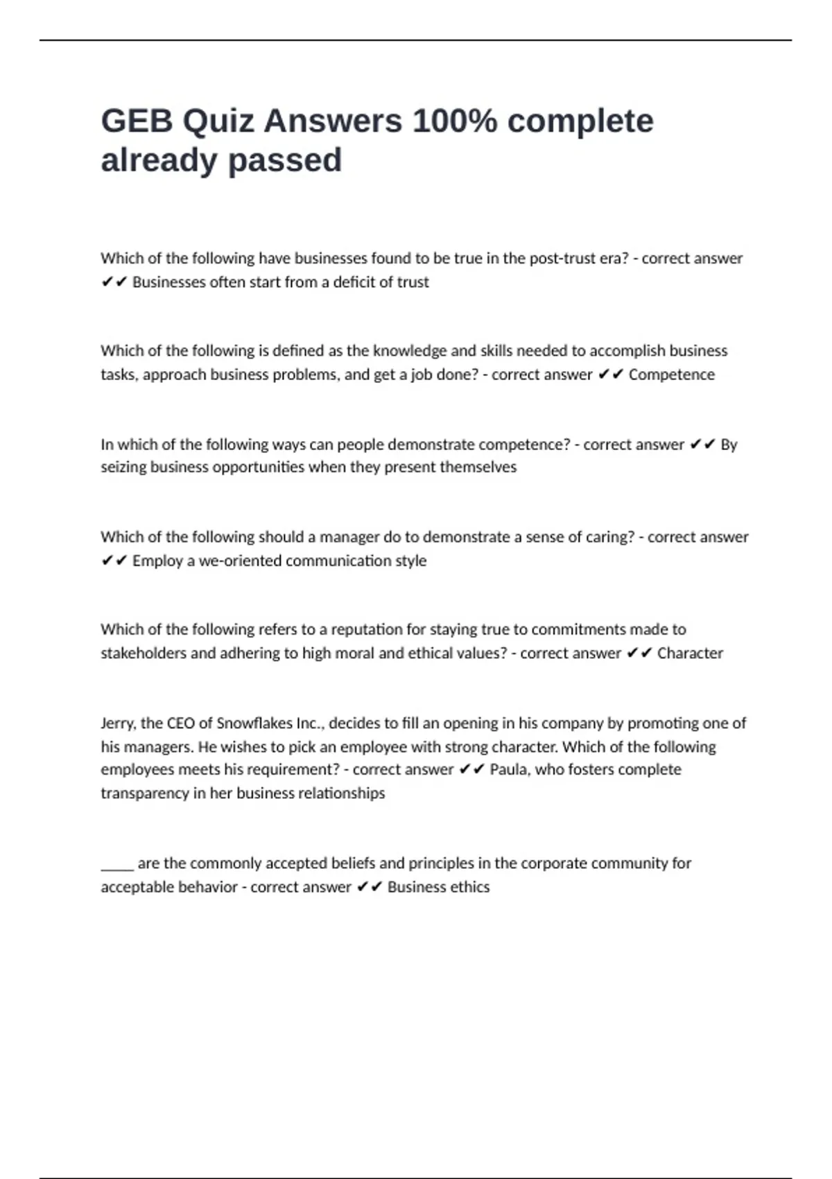 GEB Quiz Answers 100- complete already passed