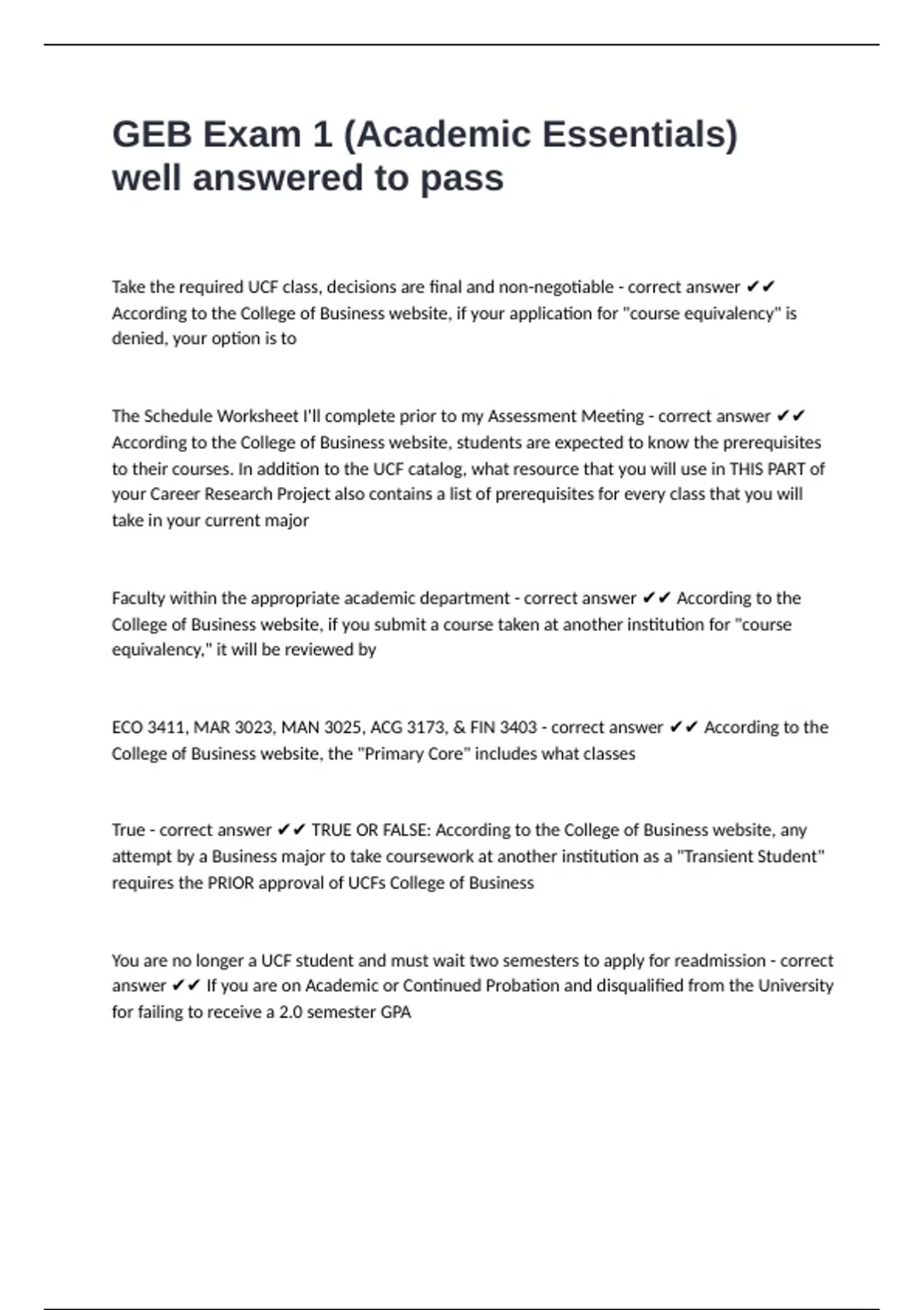 Take the required UCF class, decisions are final and non-negotiable - correct answer ✔✔