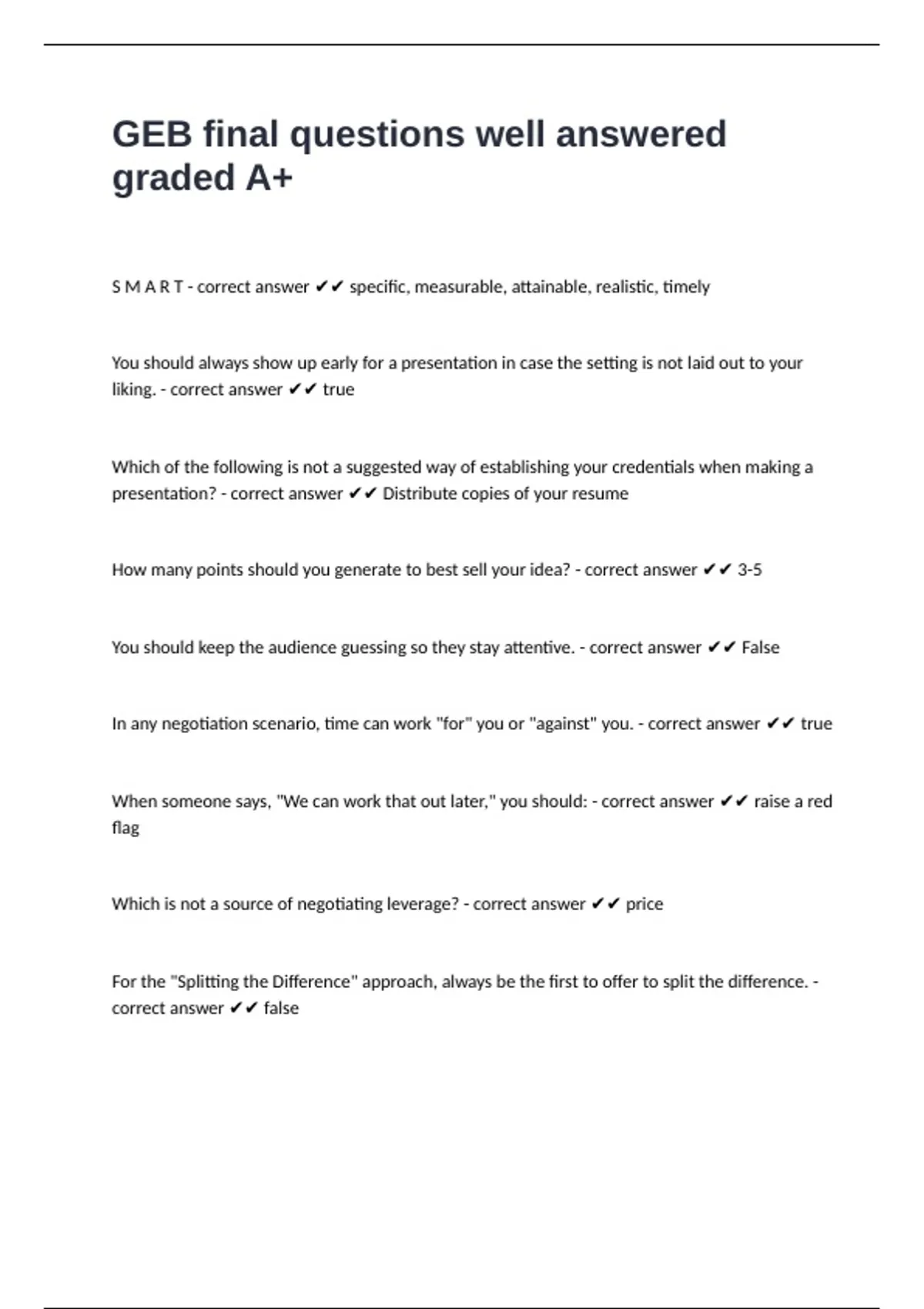 GEB final questions well answered graded A+