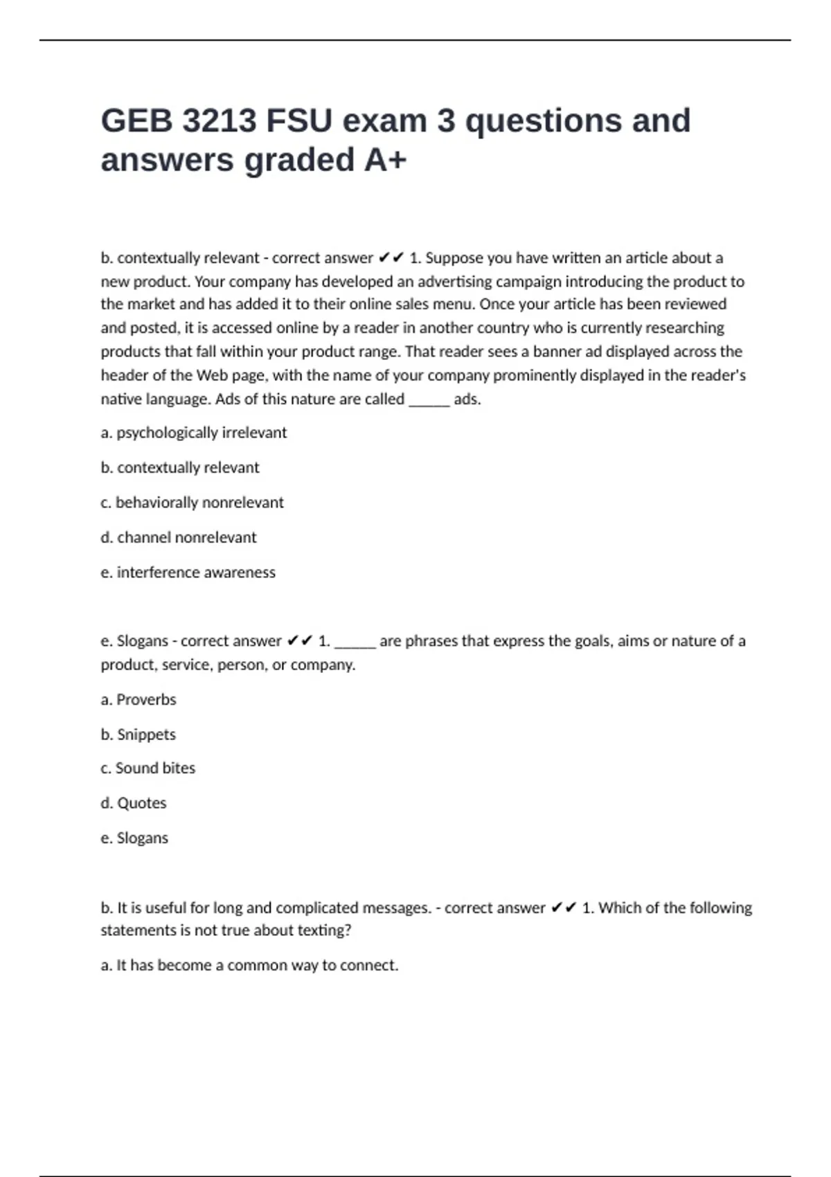 GEB 3213 FSU exam 3 questions and answers graded A+