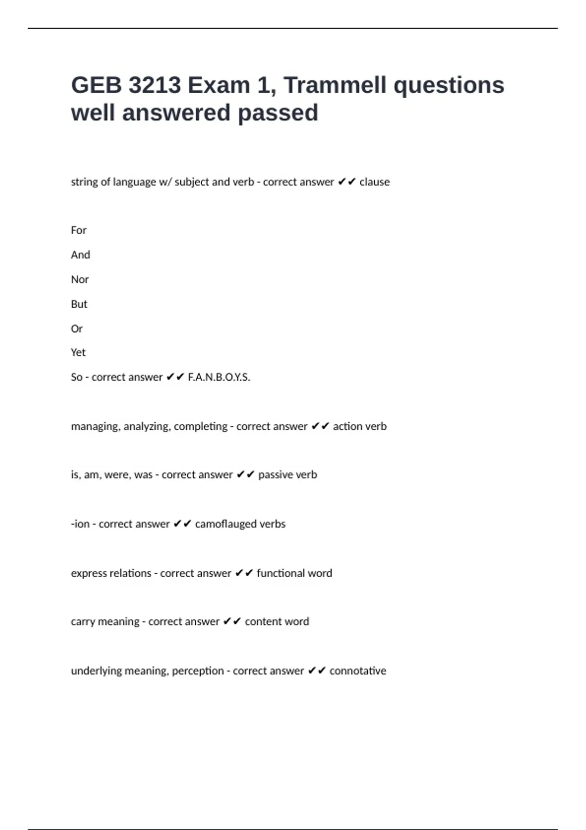 GEB 3213 Exam 1, Trammell questions well answered passed