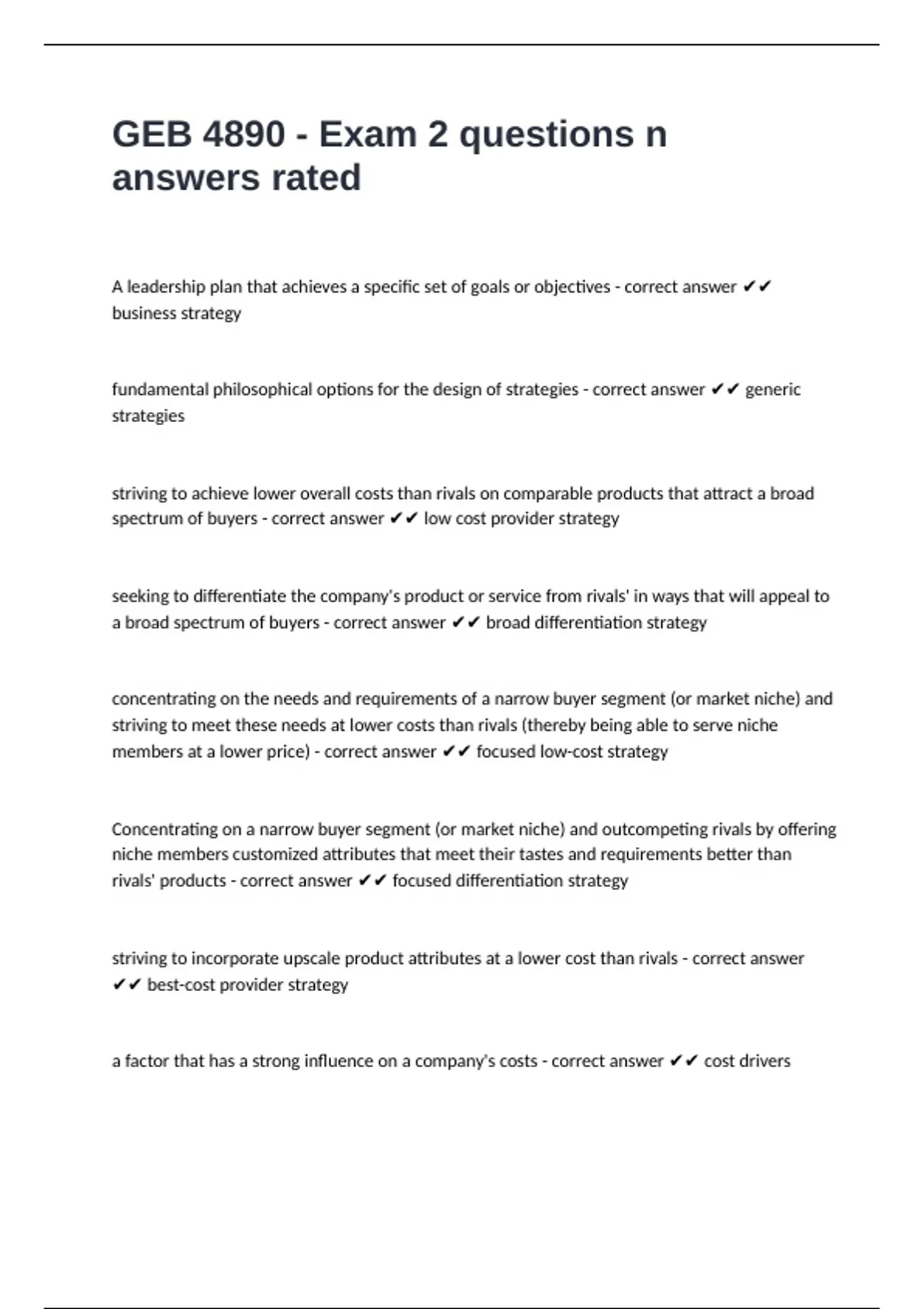 GEB 4890 - Exam 2 questions n answers rated