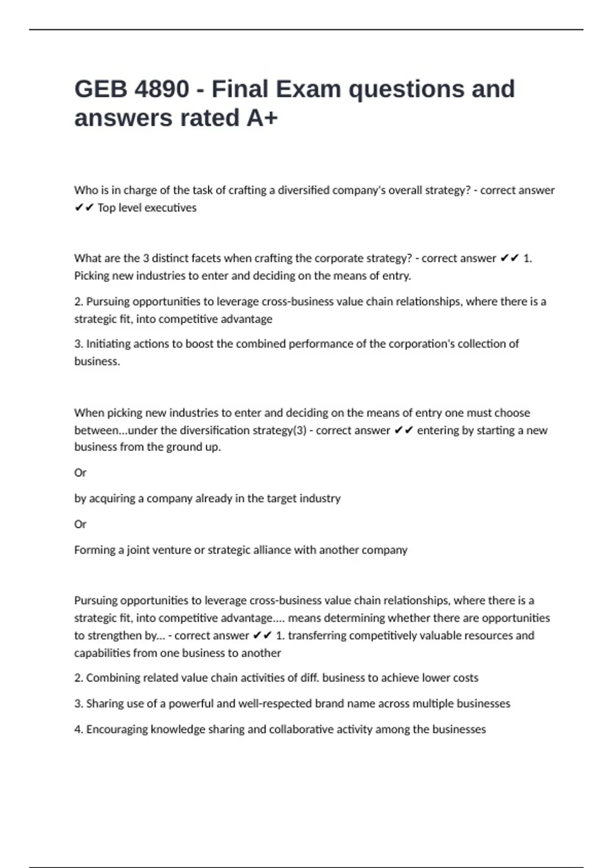 include.... - correct answer ✔✔ 1. Sticking closely with the existing business lineup & pursuing