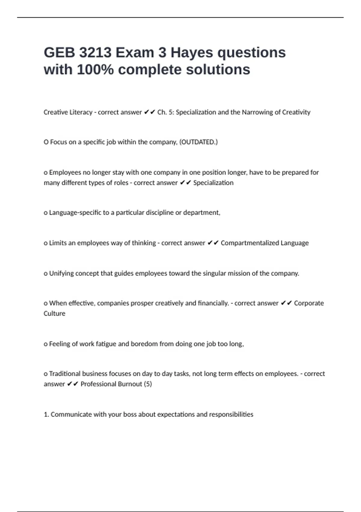 GEB 3213 Exam 3 Hayes questions with 100% complete solutions