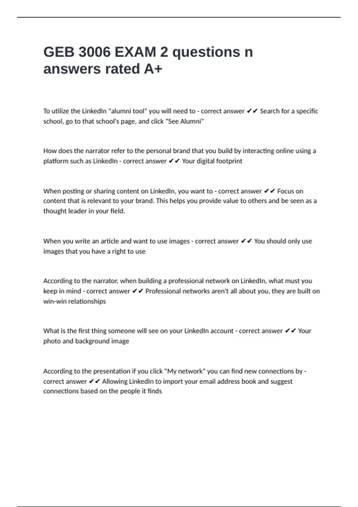 GEB 3006 EXAM 2 questions n answers rated A+