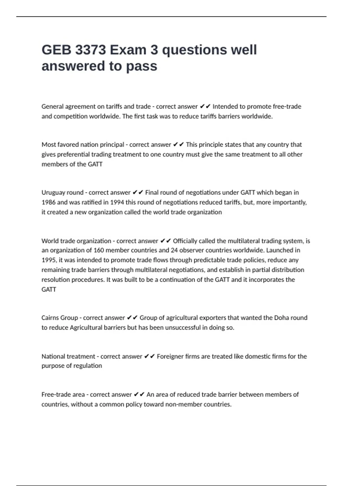 General agreement on tariffs and trade - correct answer ✔✔ Intended to promote free-trade
