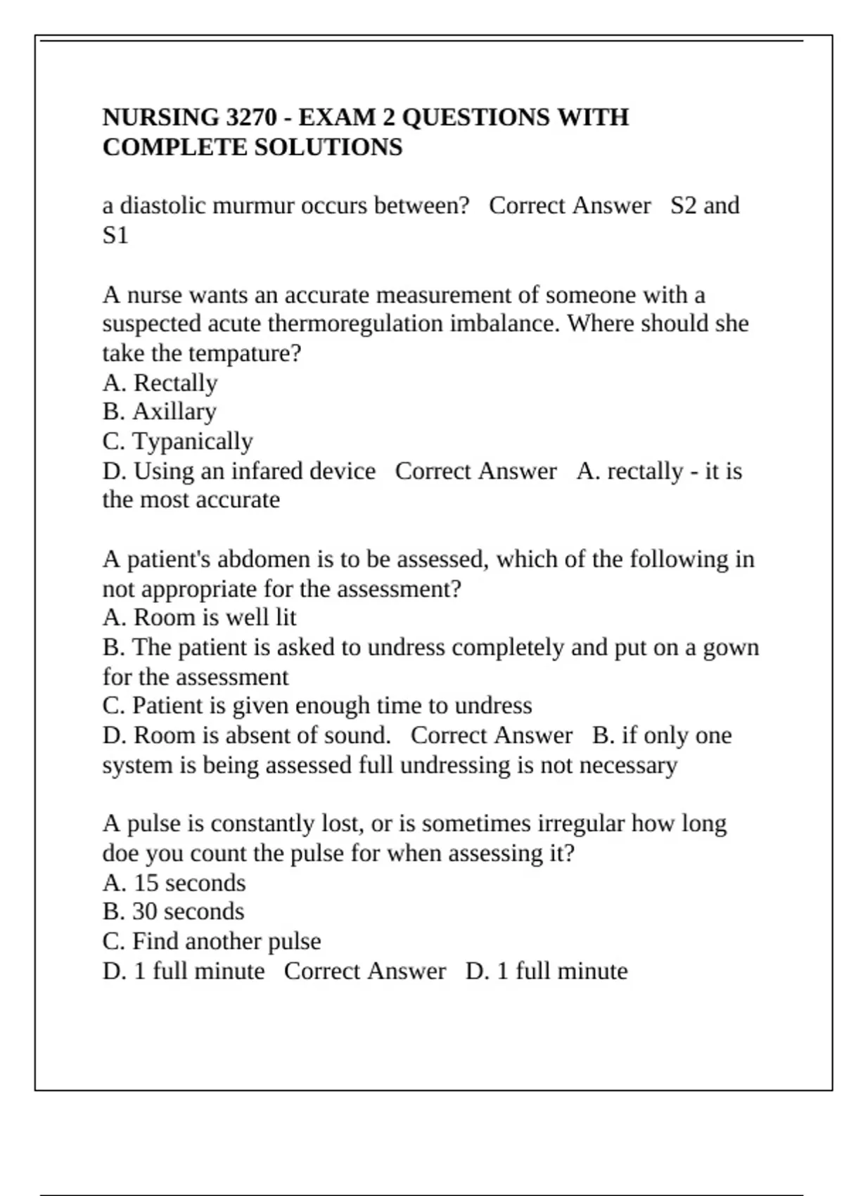 NURSING 3270 - EXAM 2 QUESTIONS WITH COMPLETE SOLUTIONS