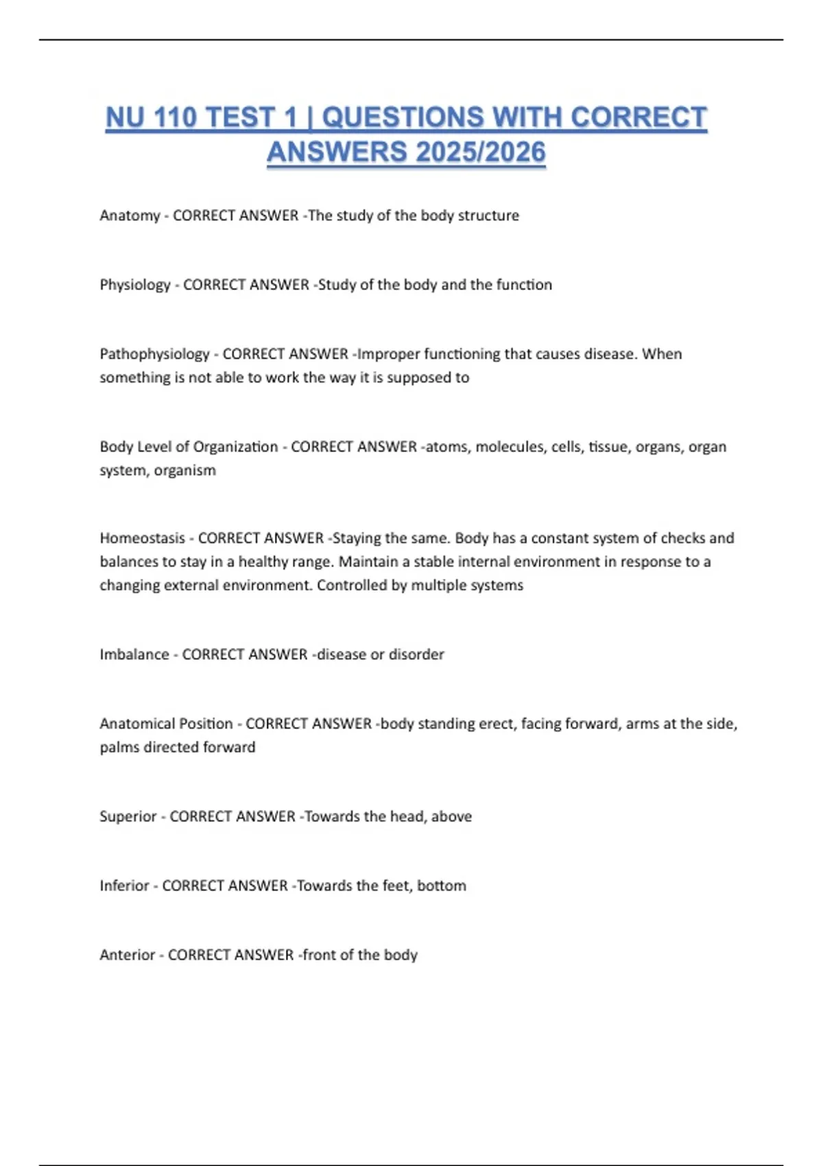 NU 110 TEST 1 | QUESTIONS WITH CORRECT