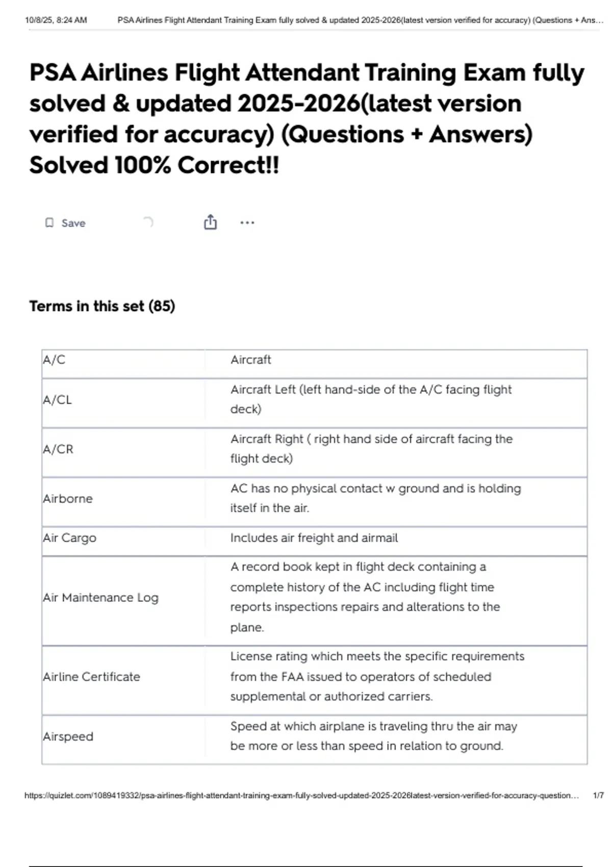 , 10/8/25, 8:24 AM PSA Airlines Flight Attendant Training Exam fully solved & updated 2025-2026(latest version verified for accuracy) (Questions + Ans…