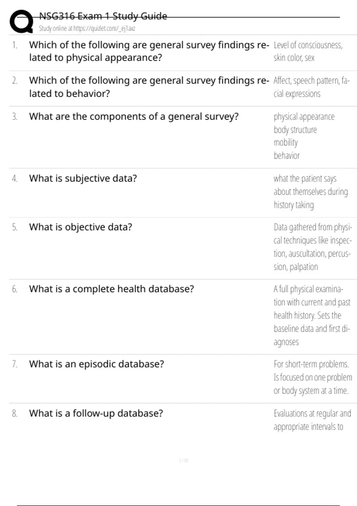 NSG316 Exam 1 Study Guide