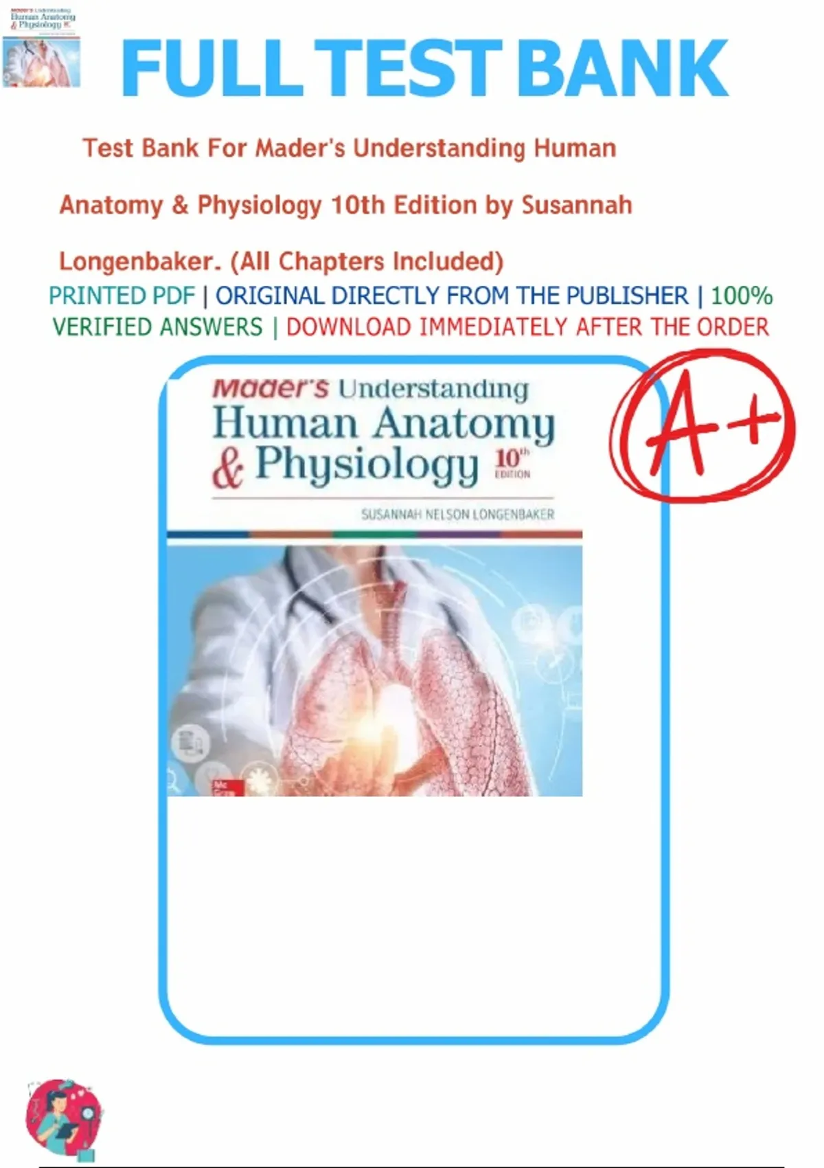 Test Bank For Mader's Understanding Human Anatomy & Physiology 10th Edition by Susannah Longenbaker.||All chapters 1-19 included.