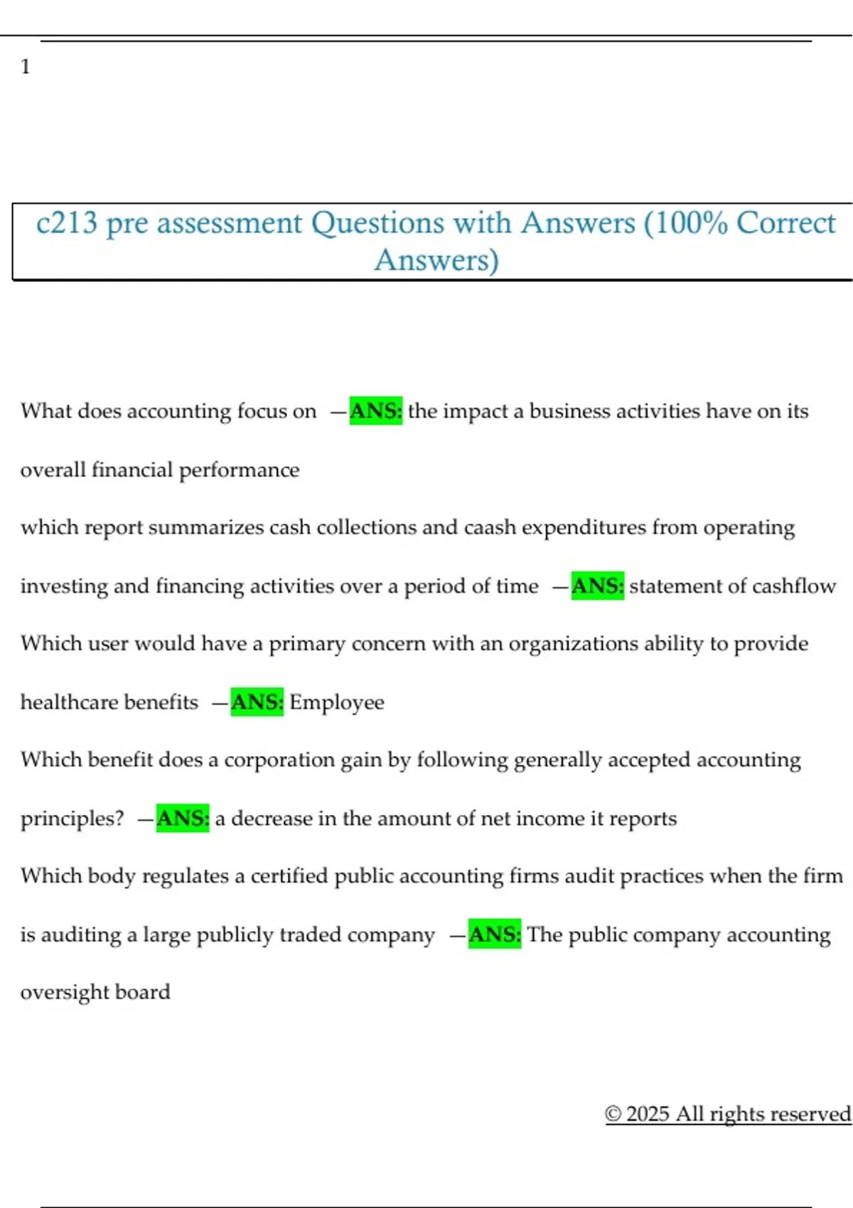 to owners and creditors of the company —ANS: Cash Flows from financing activities
