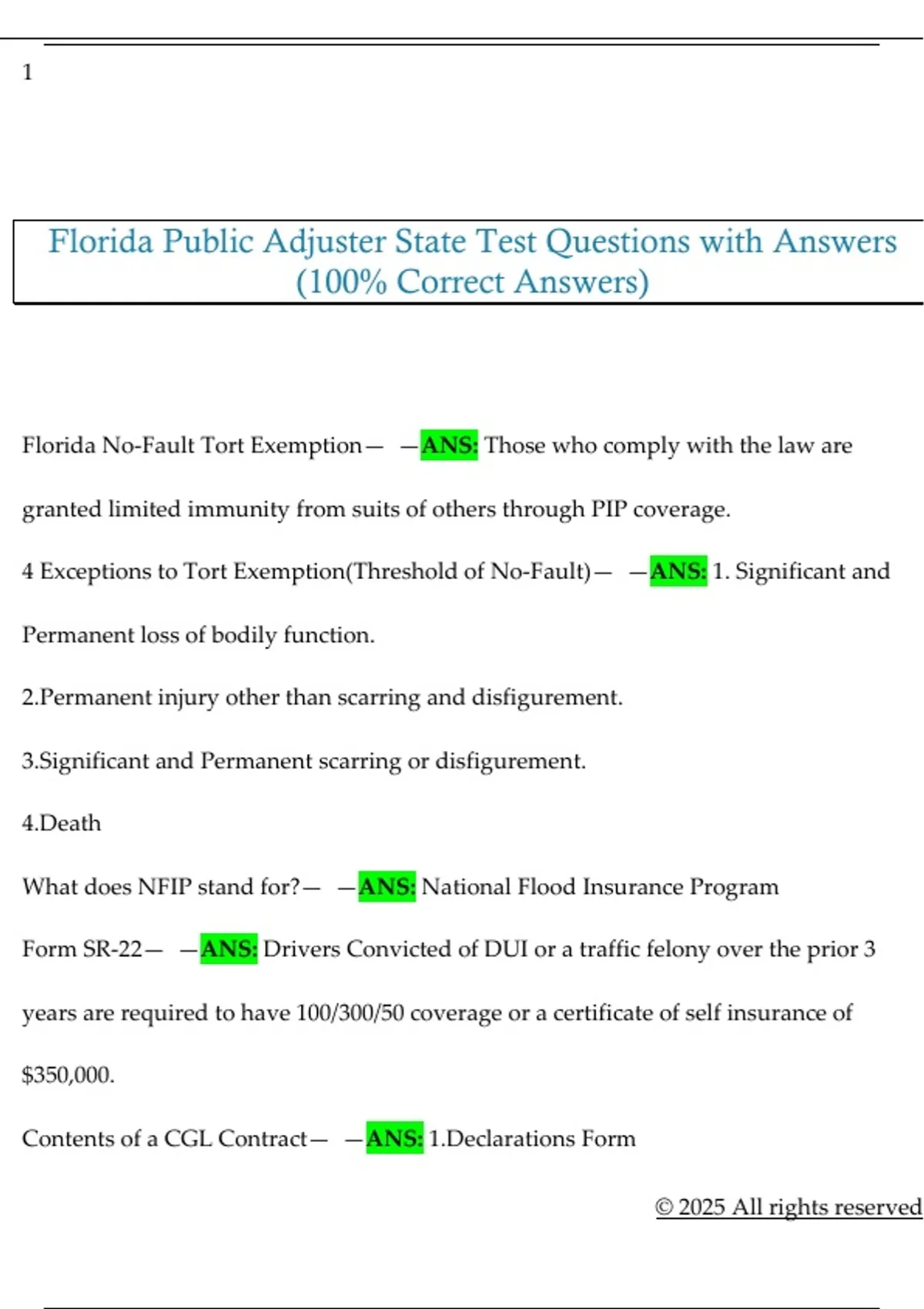 Florida No-Fault Tort Exemption— —ANS: Those who comply with the law are