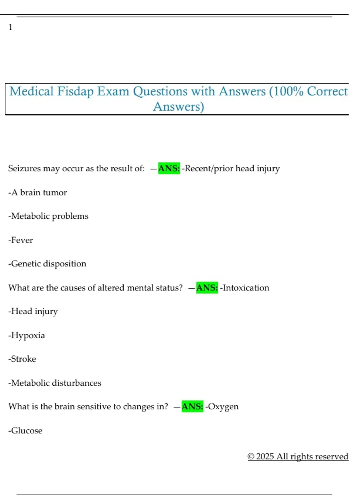 Medical Fisdap Exam Questions with Answers (100% Correct