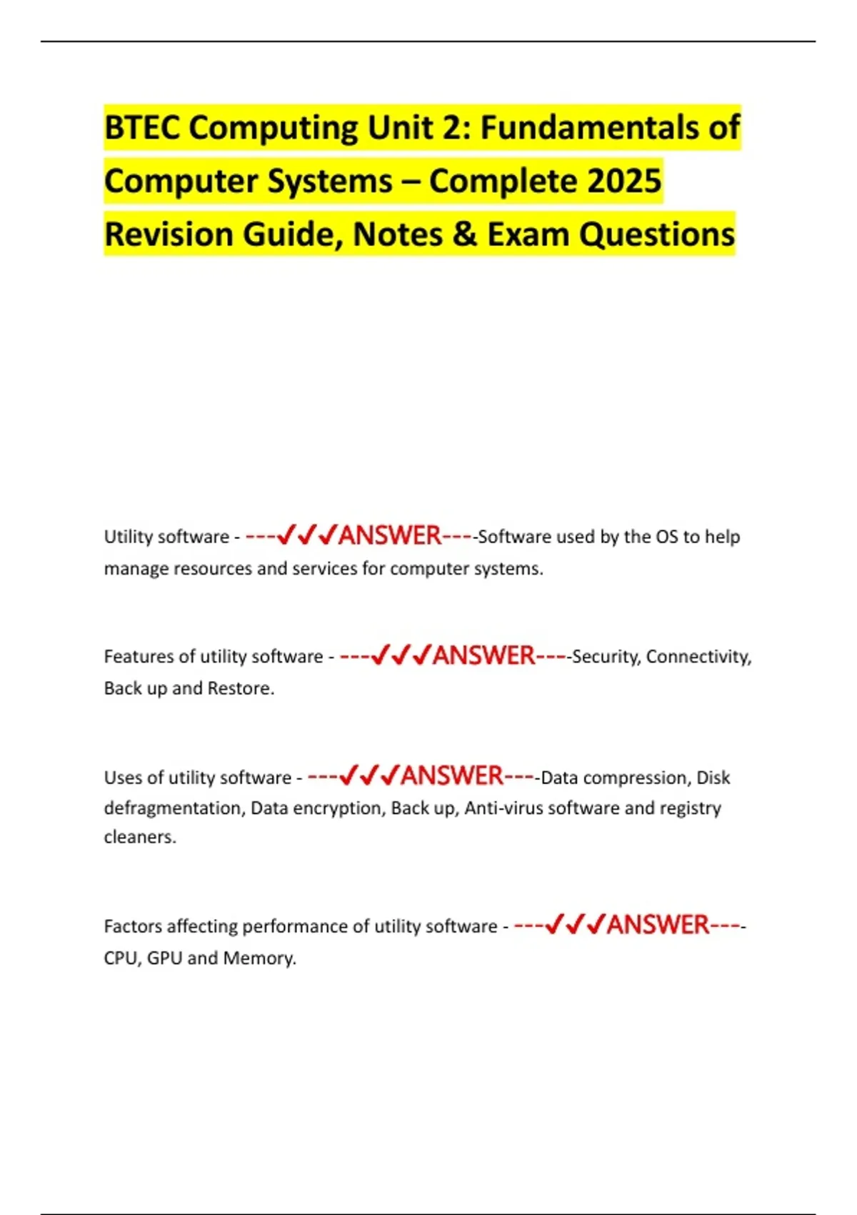 Revision Guide, Notes & Exam Questions