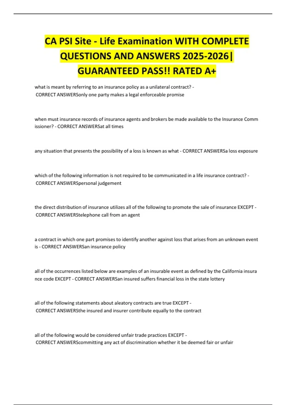 GUARANTEED PASS!! RATED A+