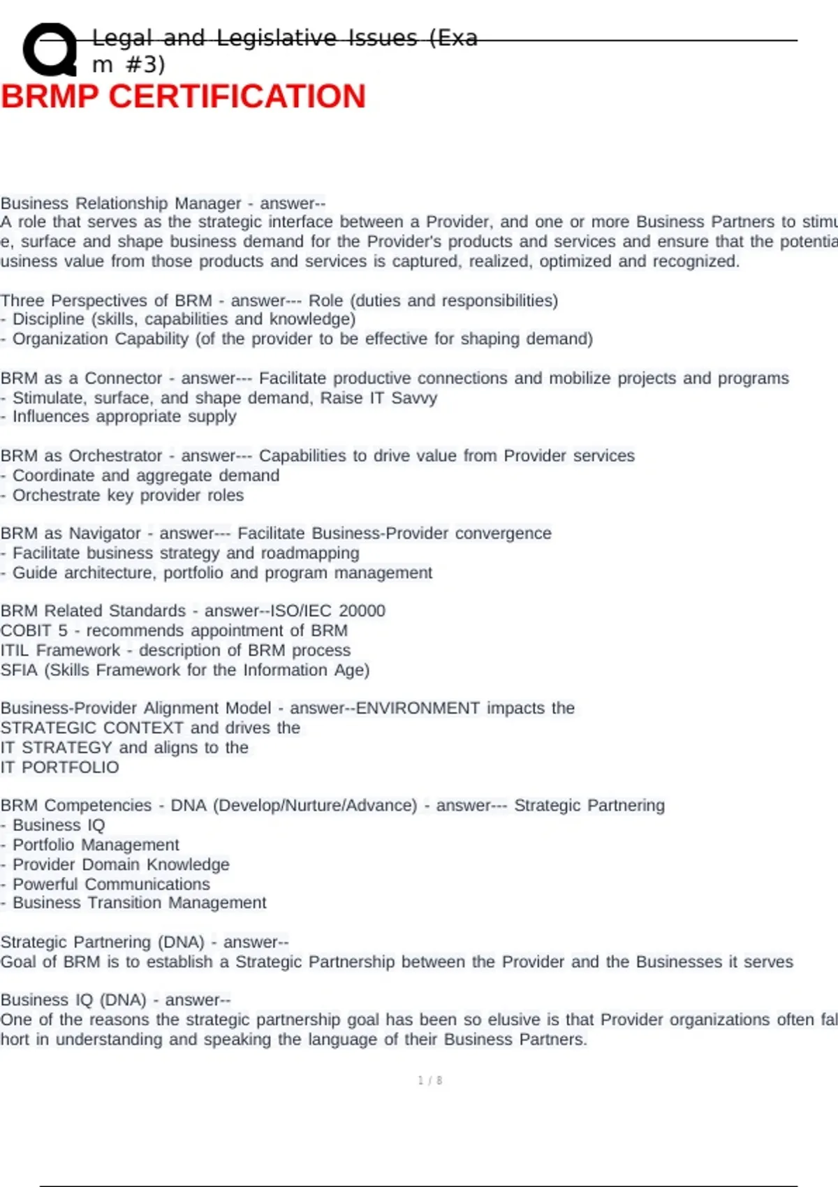 Exam of 8 pages for the course BRMP Certification at BRMP Certification (BRMP CERTIFICATION)
