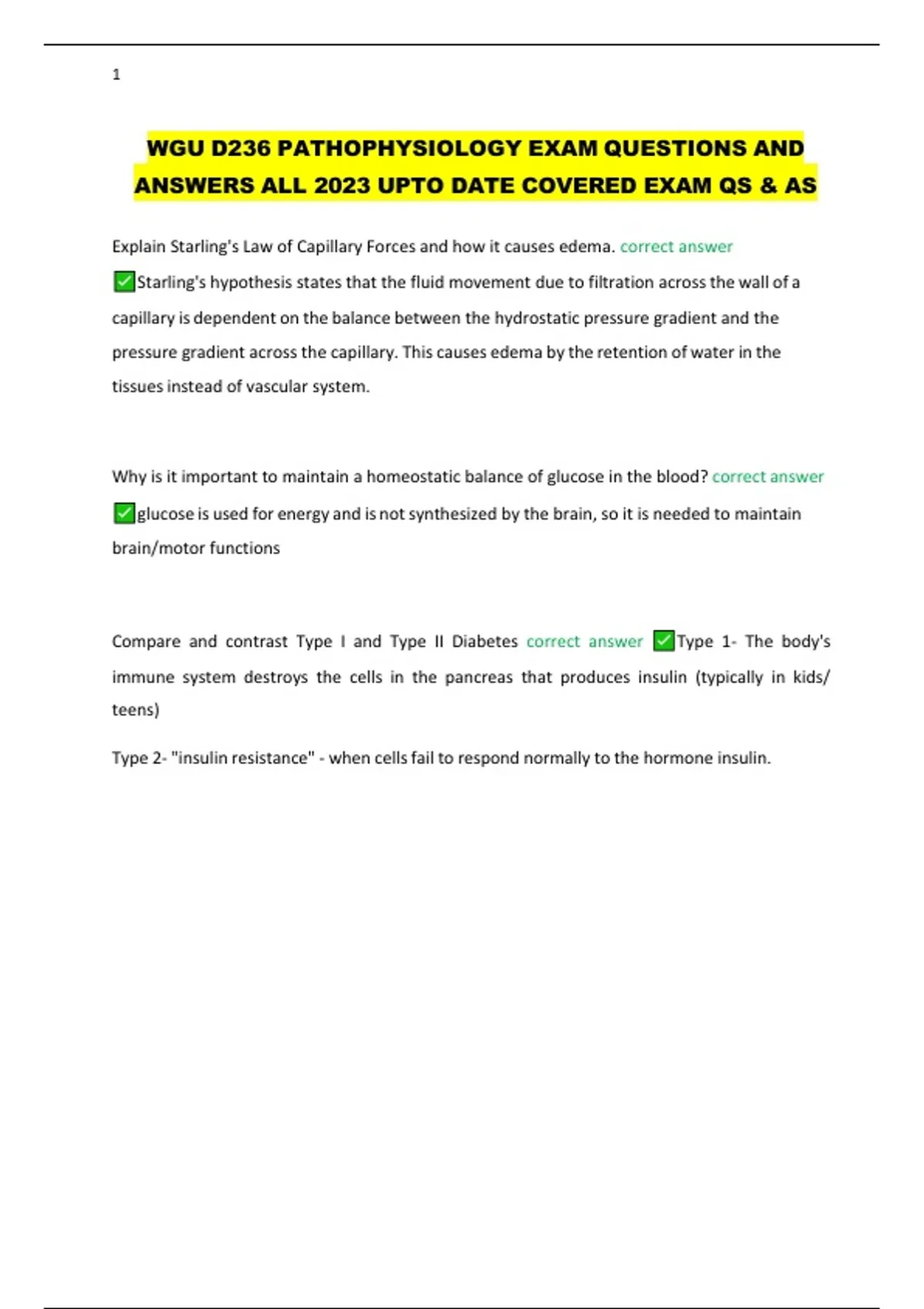 WGU D236 PATHOPHYSIOLOGY EXAM QUESTIONS AND
