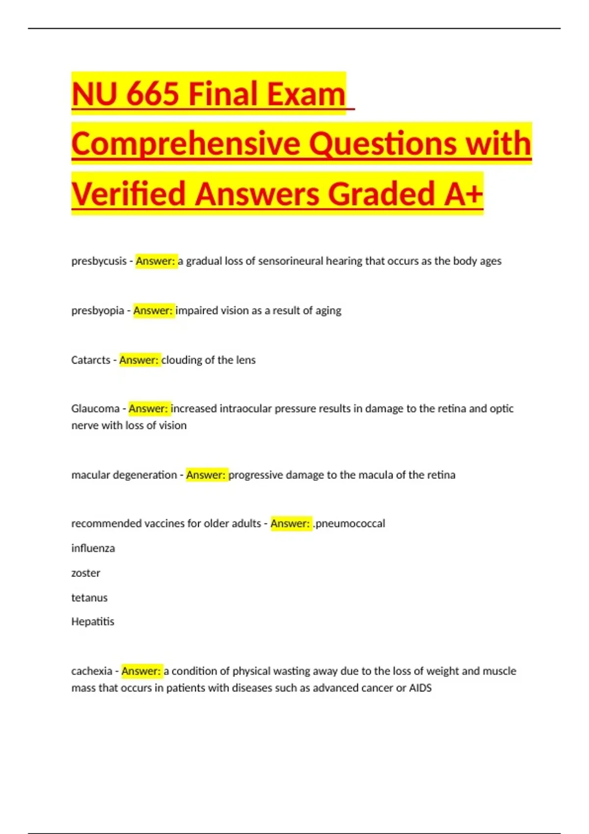 recommended vaccines for older adults - Answer: .pneumococcal