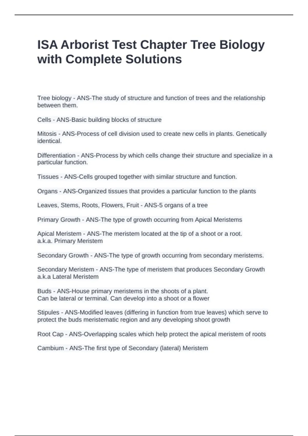 ISA Arborist Test Chapter Tree Biology with Complete Solutions
