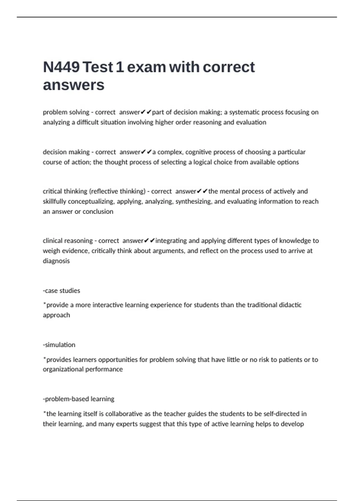 N449 Test 1 exam with correct |||\\\ |||\\\ |||\\\ |||\\\ |||\\\ |||\\\