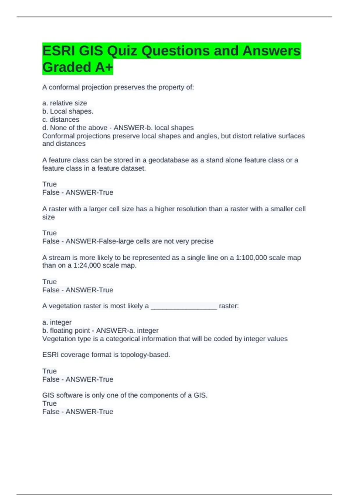 ESRI GIS Quiz Questions and Answers