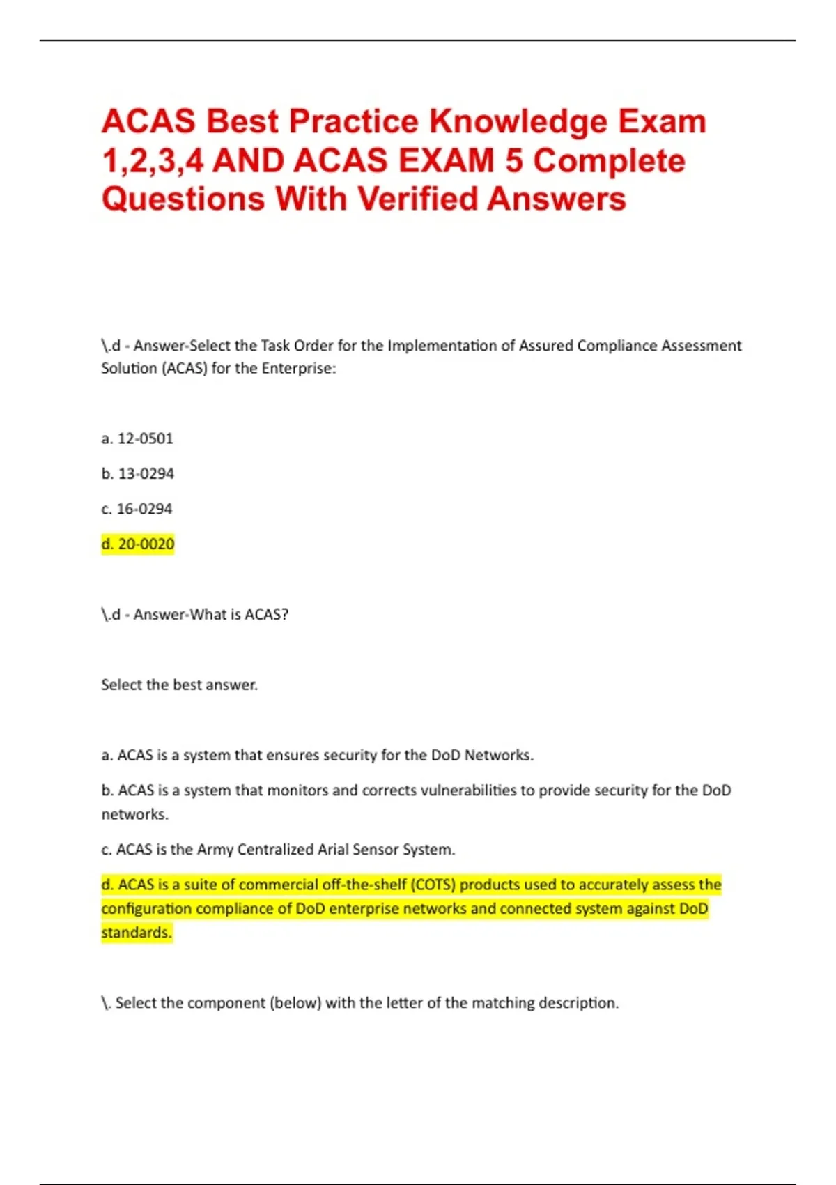 1,2,3,4 AND ACAS EXAM 5 Complete