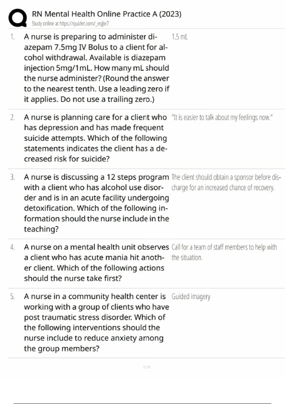 - RN Mental Health Online Practice A