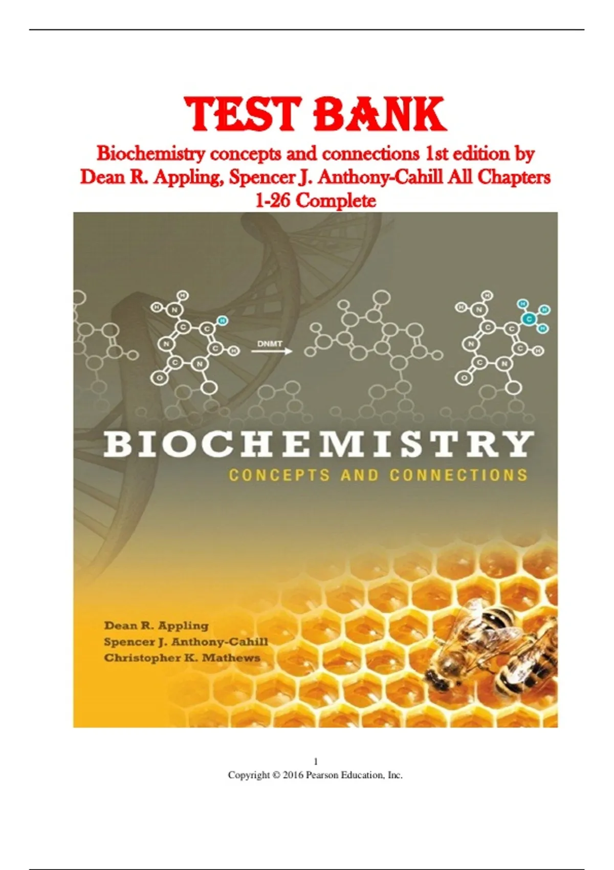Get the Biochemistry: Concepts and Connections 1st Edition (Appling et al.) Test Bank – a comprehensive resource with accurate, verified questions and detailed answers for every chapter. Includes multiple-choice, true/false, and short-answer questions covering key biochemistry topics such as biomolecules, proteins, enzymes, metabolism, and more. Perfect for exam preparation, instructors, and students aiming for top grades in biochemistry courses.