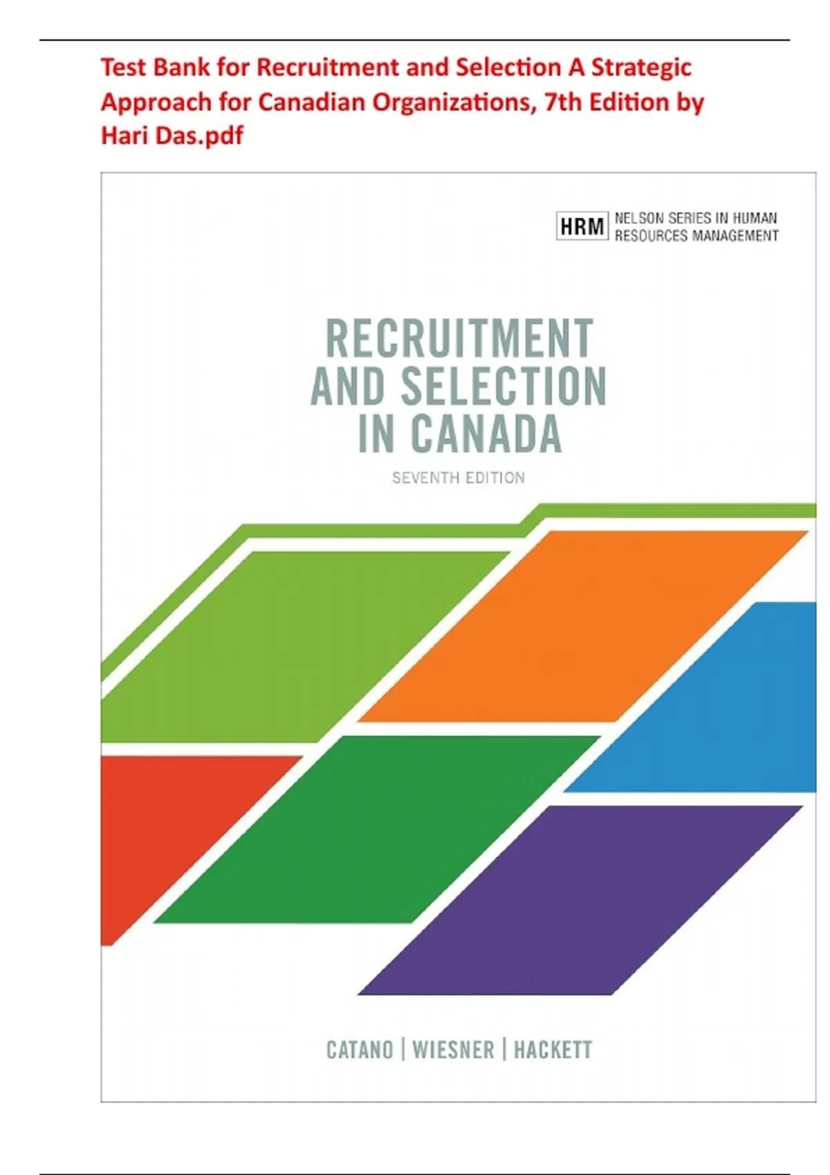 Test Bank for Recruitment and Selection A Strategic Approach for Canadian Organizations, 7th Edition by Hari Das||ISBN: 9788776819903|| ALL CHAPTERS .pdf