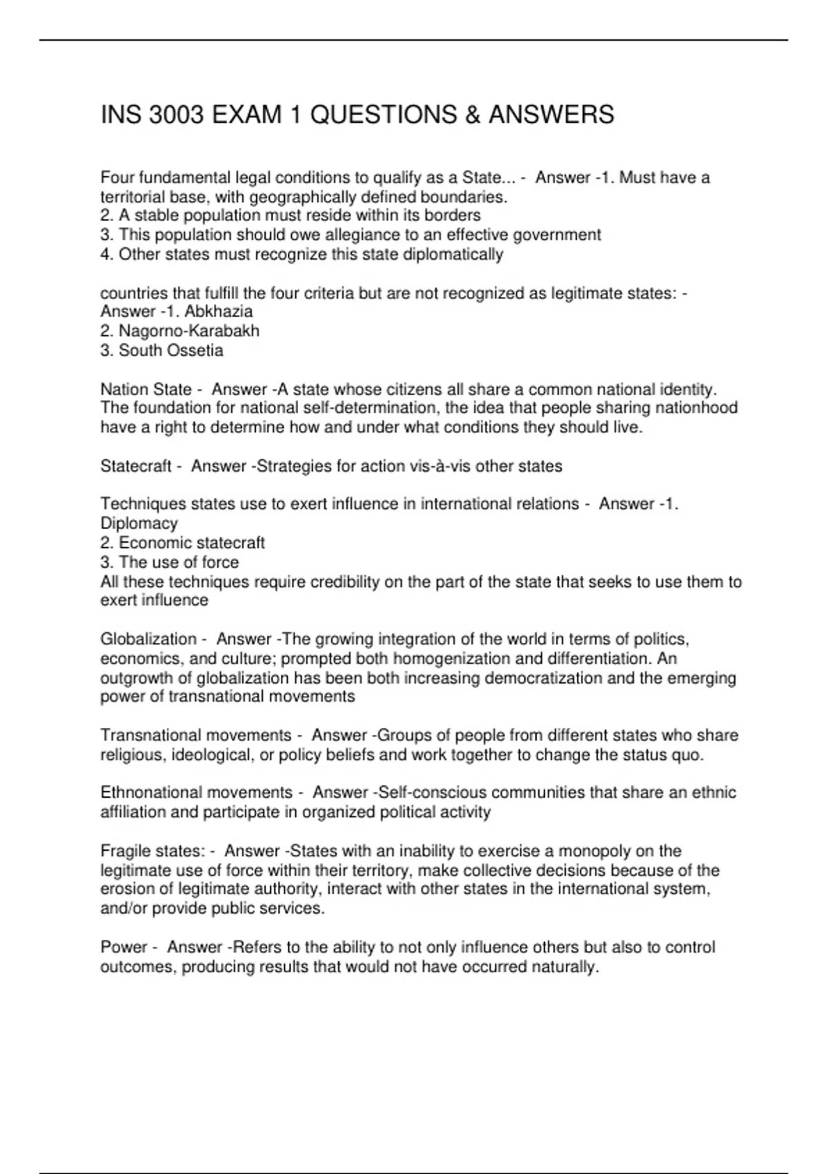 INS 3003 EXAM 1 QUESTIONS & ANSWERS