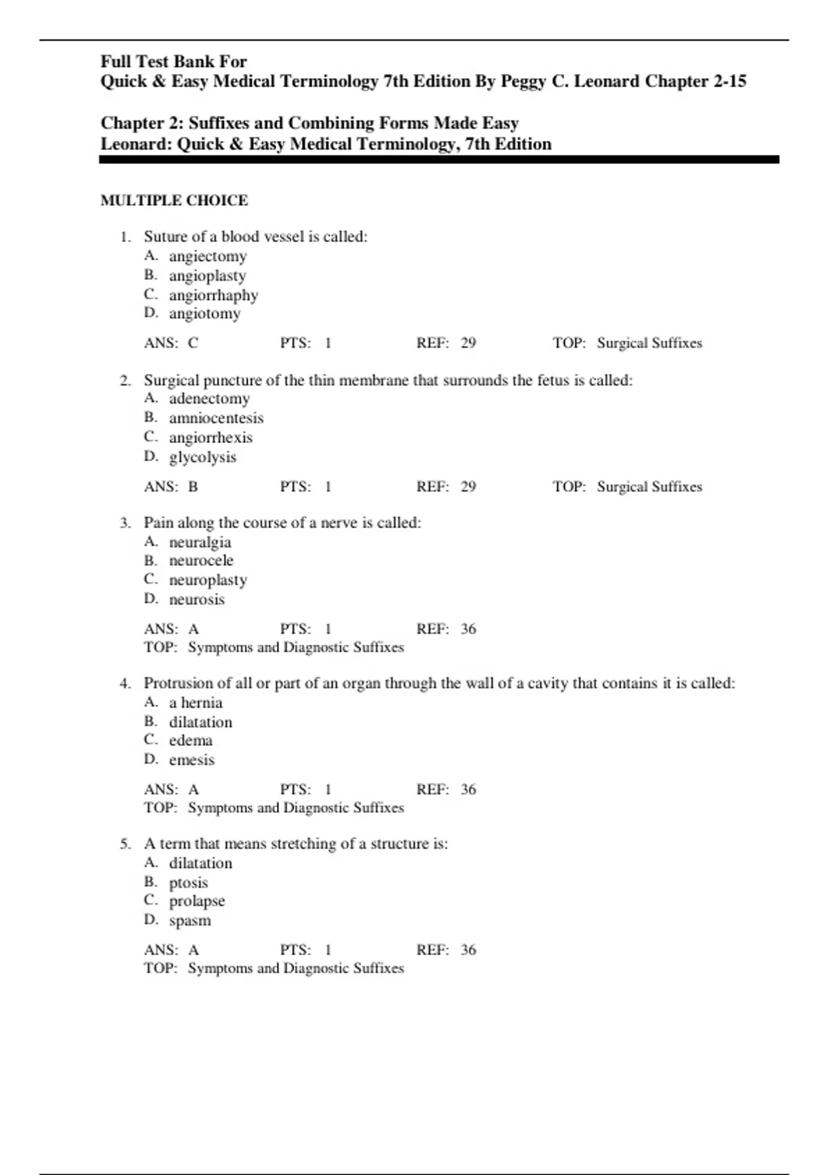 Quick & Easy Medical Terminology 7th Edition By Peggy C. Leonard Chapter 2-15
