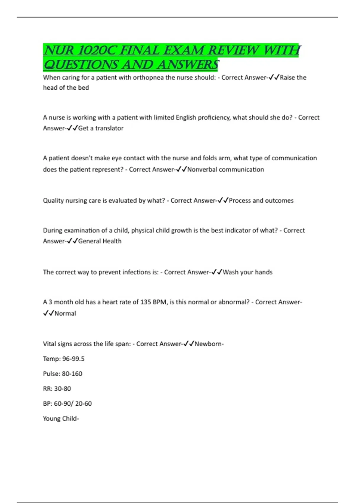 Vital signs across the life span: - Correct Answer-✔✔Newborn-