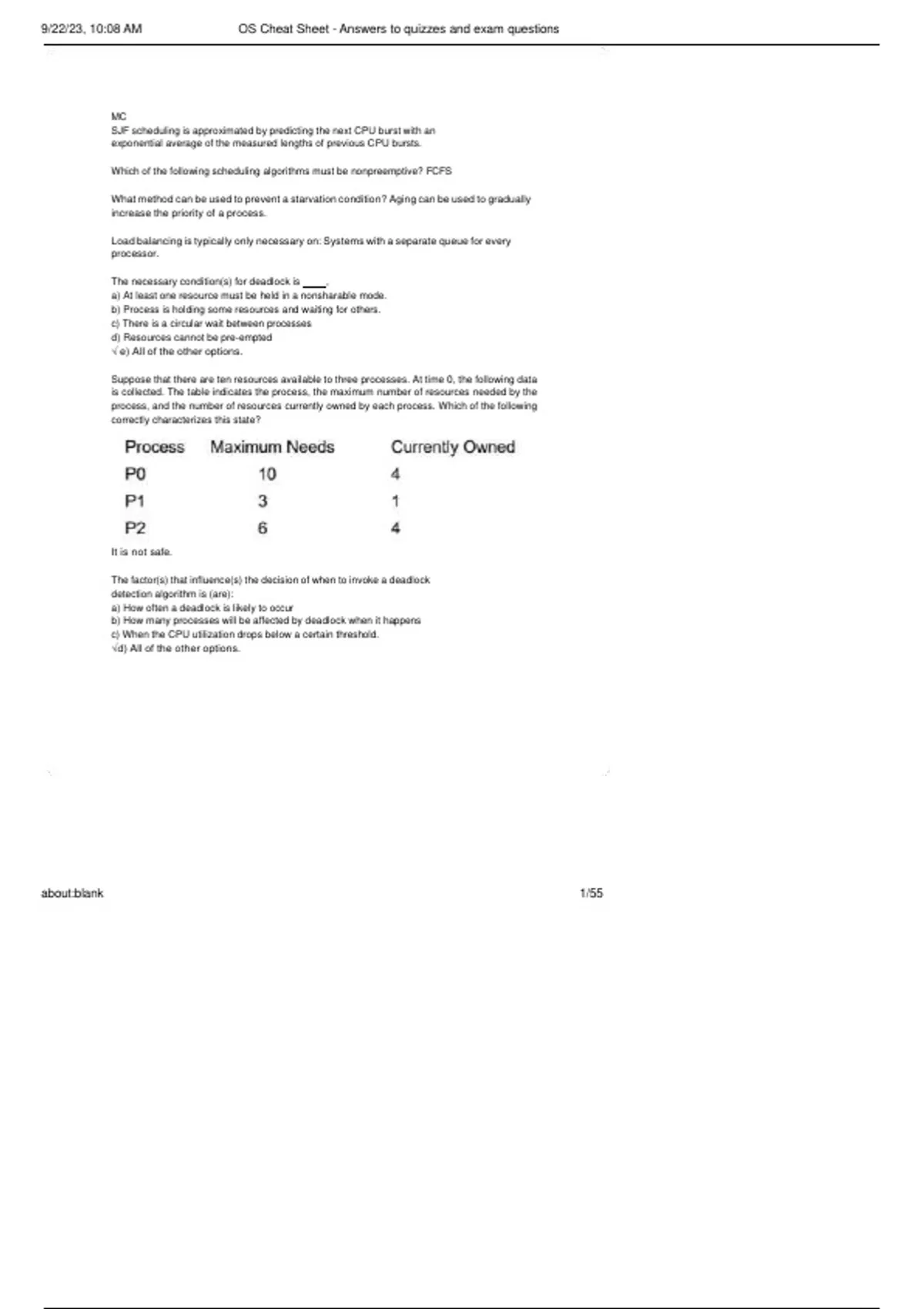 , 9/22/23, 10:08 AM OS Cheat Sheet - Answers to quizzes and exam questions