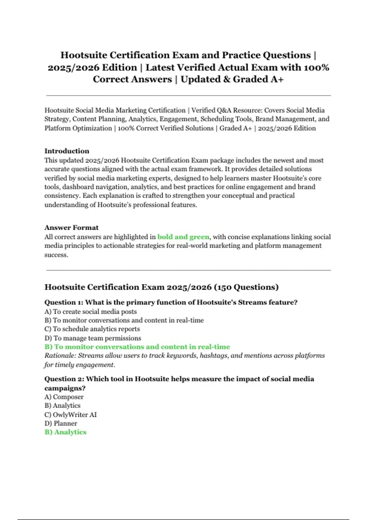 This updated 2025/2026 Hootsuite Certification Exam package includes the newest and most