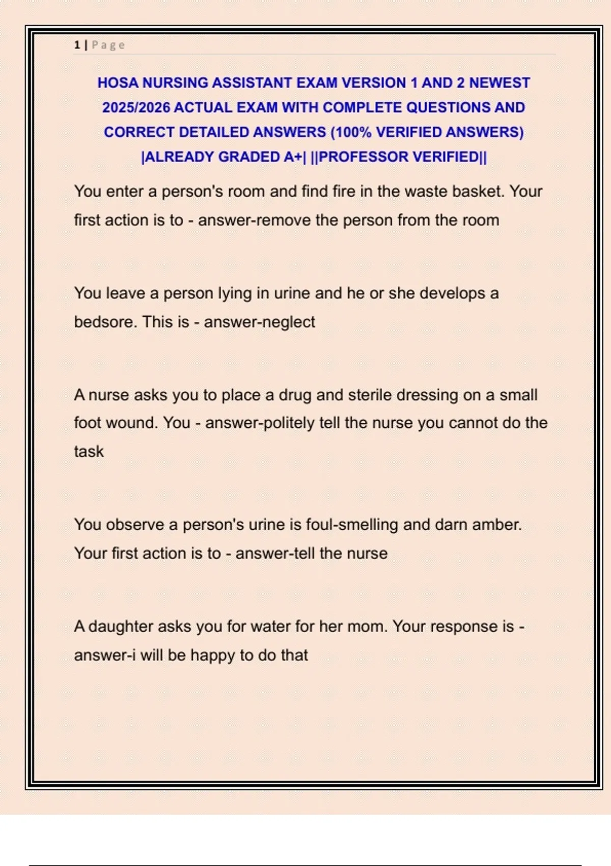 HOSA NURSING ASSISTANT EXAM VERSION 1 AND 2 NEWEST