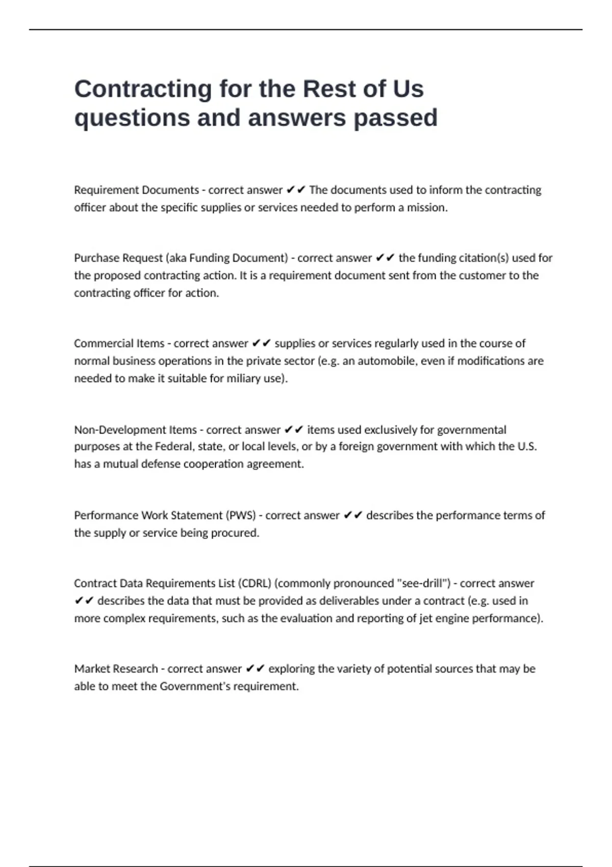 Requirement Documents - correct answer ✔✔ The documents used to inform the contracting